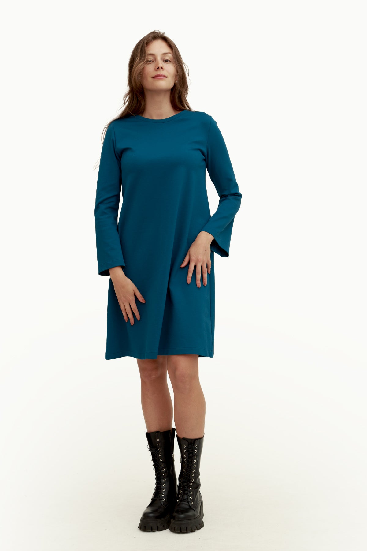 Abito Blu Petrolio Maniche Lunghe