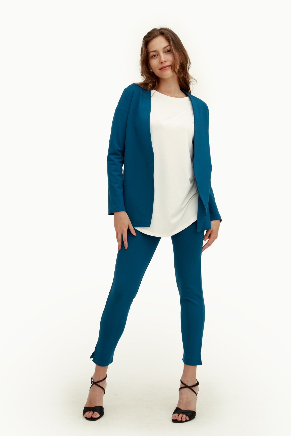 Perfetta per meeting professionali sopra una camicia bianca, per aperitivi eleganti con un top colorato, o per weekend casual-chic con jeans e sneakers. La tonalità blu petrolio si abbina magnificamente con bianchi, crema, beige e colori neutri.