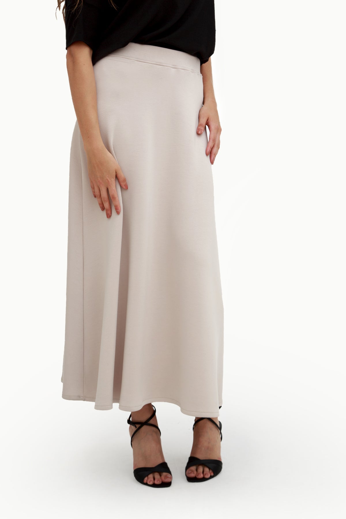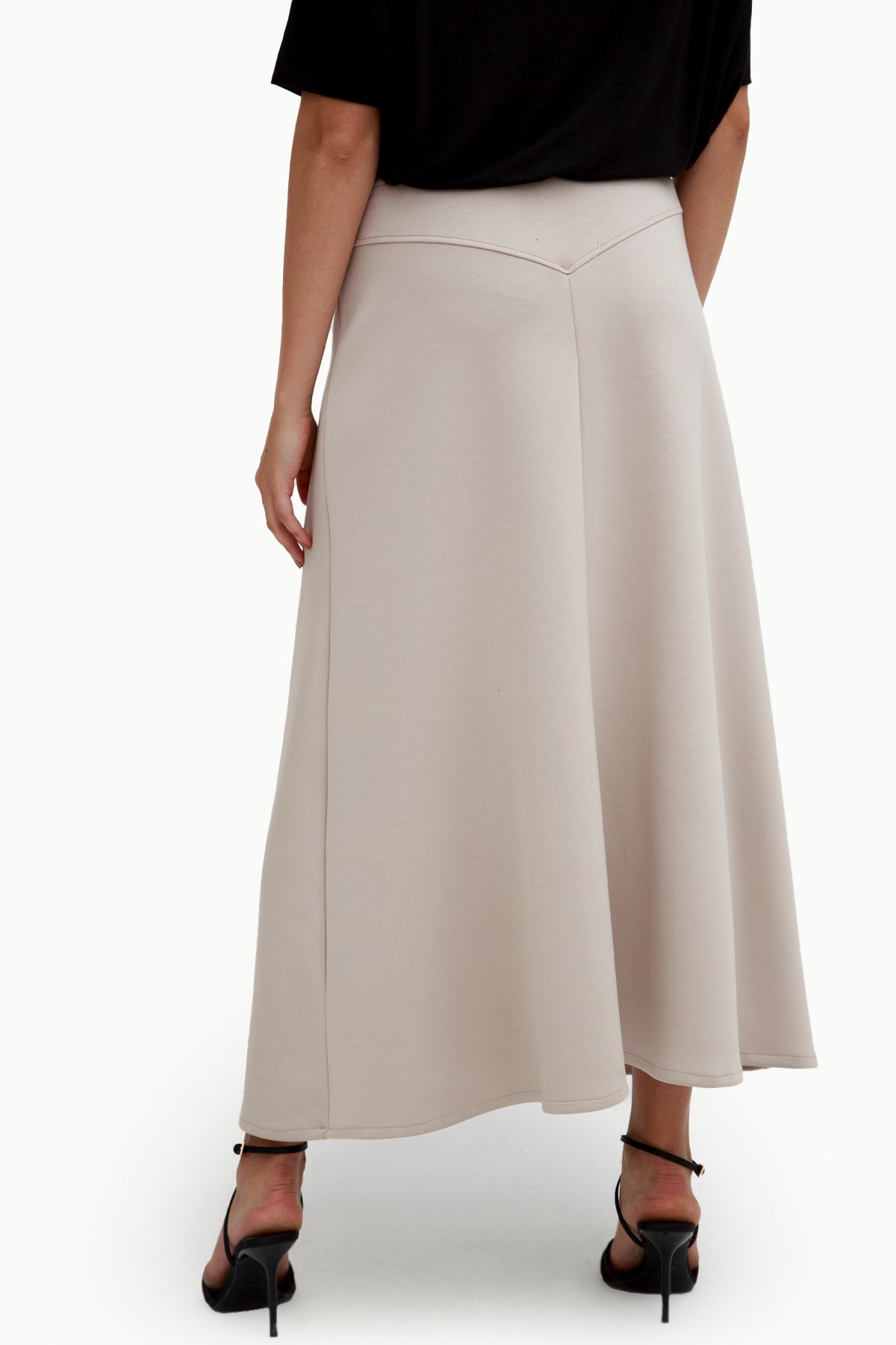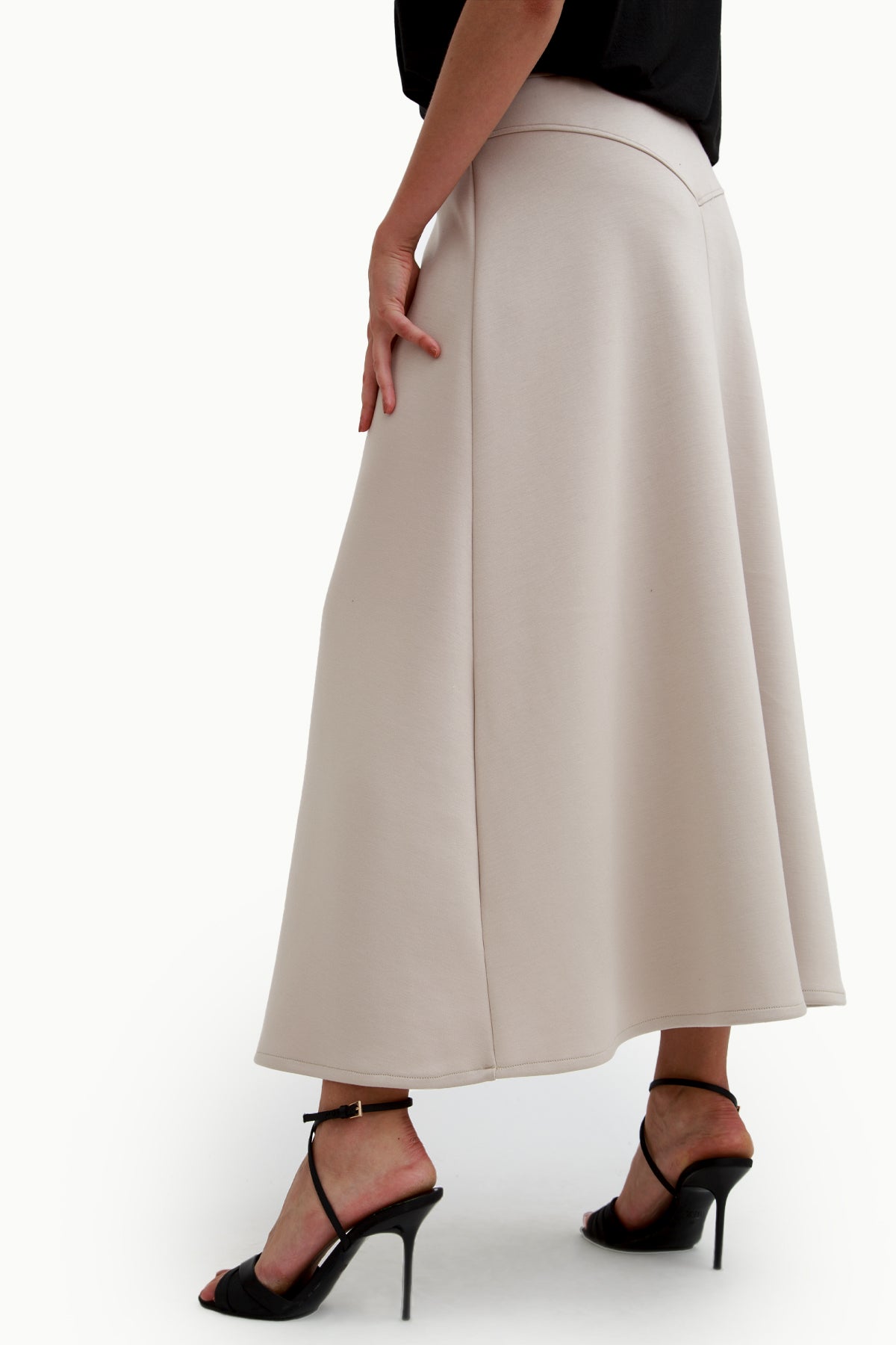 Gonna midi elegante dal taglio raffinato nel delicato colore panna/gesso, perfetta per creare look sofisticati e versatili. Il design contemporaneo e la silhouette femminile la rendono ideale per ogni occasione.
